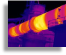 En hornos rotatorios como en la industria del cemento, se puede detectar roturas en las paredes refractarias.